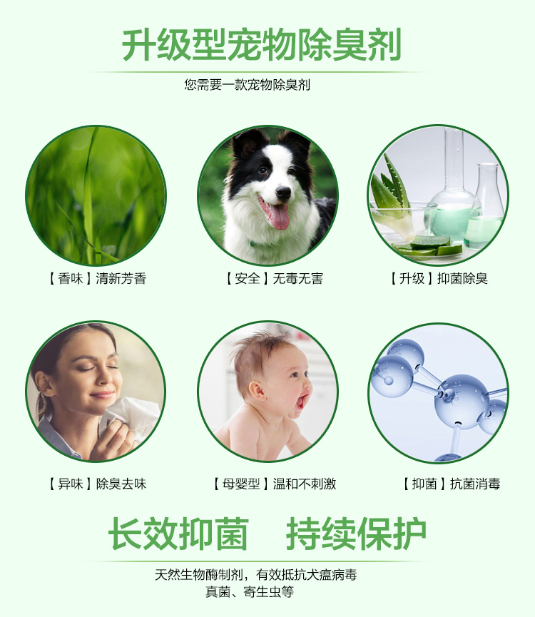 宠物除臭剂可以瞬间分解空气中的臭味,无毒无害,保持空气清新。